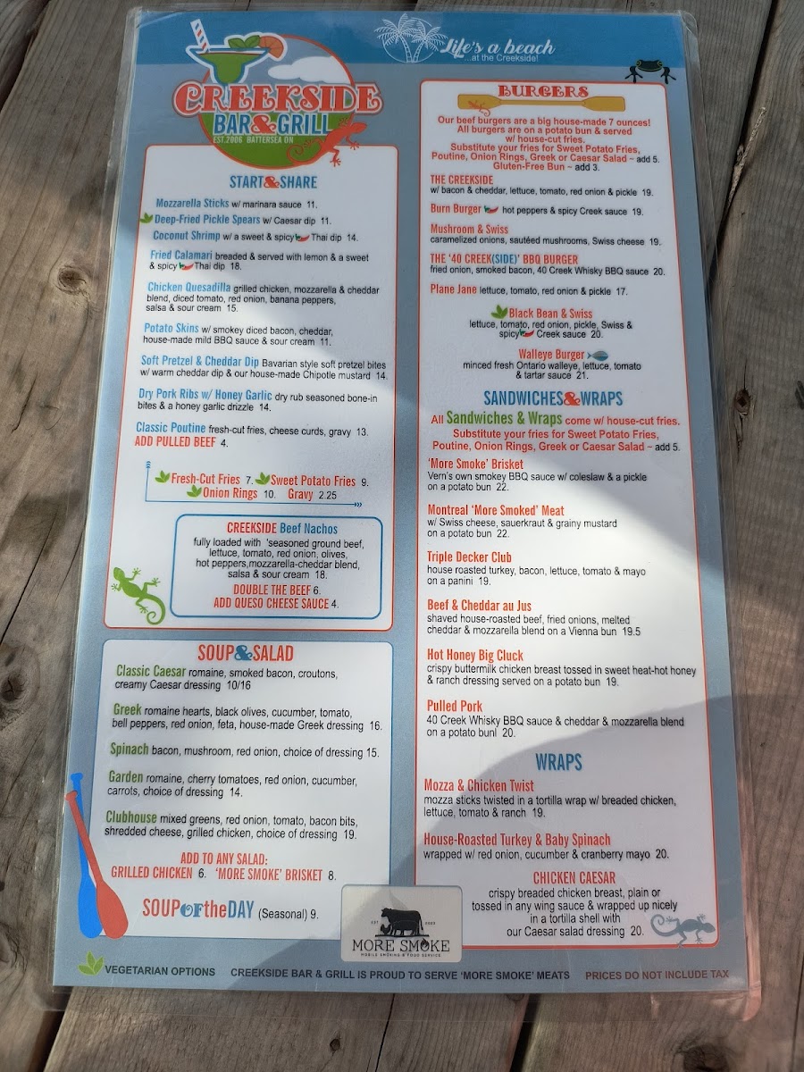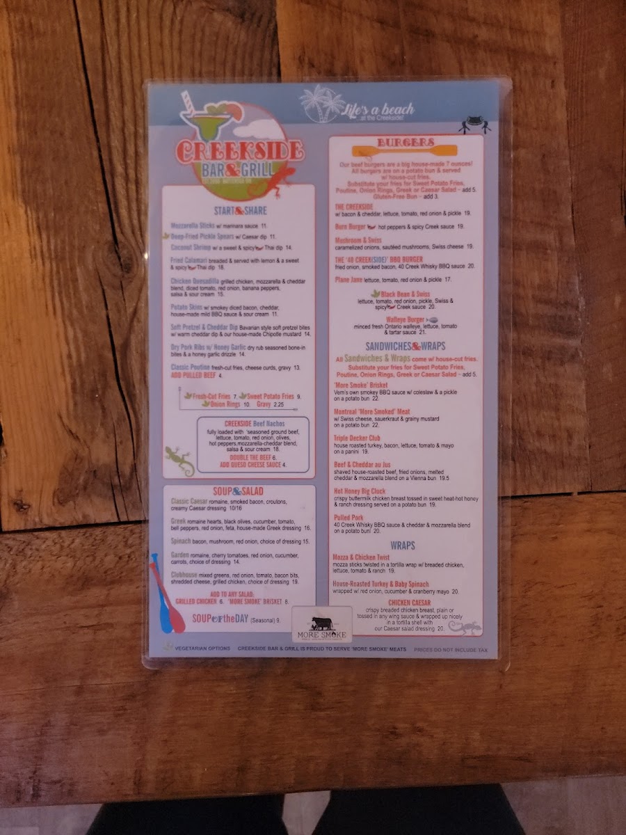 As for beverages, patrons can enjoy a range of non-alcoholic drinks from classic Rootbeer to delightful specialty creations like the Creekside Quencher. Customers rave about the friendly atmosphere, enhanced by live music that adds a touch of vibrancy to your dining experience.