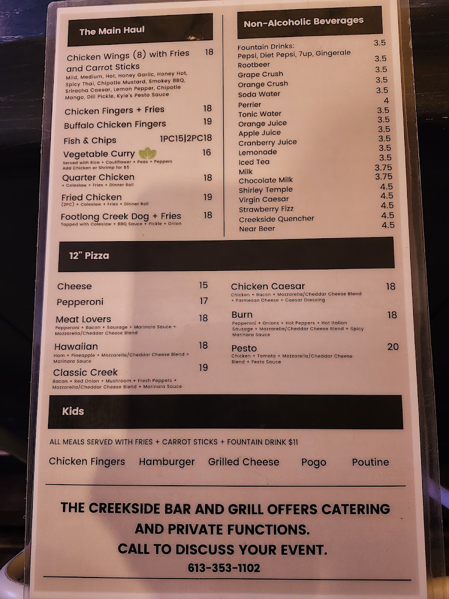 Welcome to Creekside Bar & Grill, a hidden gem located at 2261 Wellington St, Battersea, ON. This inviting restaurant showcases a diverse menu that caters to varied tastes, featuring a selection of 12" pizzas such as the mouthwatering Meat Lovers and the unique Pesto. Fresh salads, including the refreshing Greek Salad and satisfying Clubhouse Salad, complement the pizza offerings perfectly.